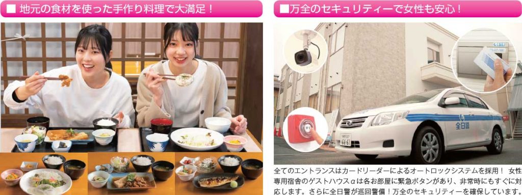四季の自然を感じながら教習!!指導員も丁寧な対応を心がけていますので、きっと教習も楽しいですよ。 さまざまな宿泊施設の中から選べるので、お好きな宿泊施設をチョイスして下さい。 各ペンション・温泉宿・ホテルでの食事も自慢。男性にはボリューム満点で大好評。女性にはヘルシーな料理を提供しています。